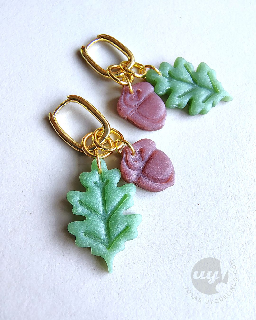 El diseño es modular y versátil: incluyen dos dijes independientes que permiten llevarlos de varias maneras. Puedes usar hoja y bellota juntas, solo la hoja, solo la bellota o incluso de forma asimétrica.