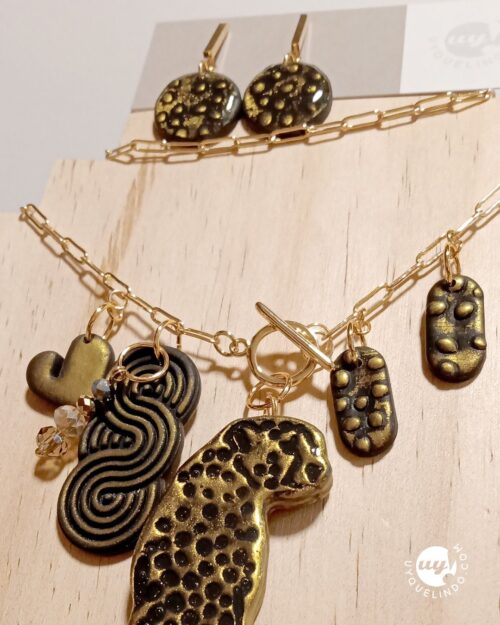Collar Pebbles de arcilla y perlas – diseño orgánico en blanco con cierre dorado